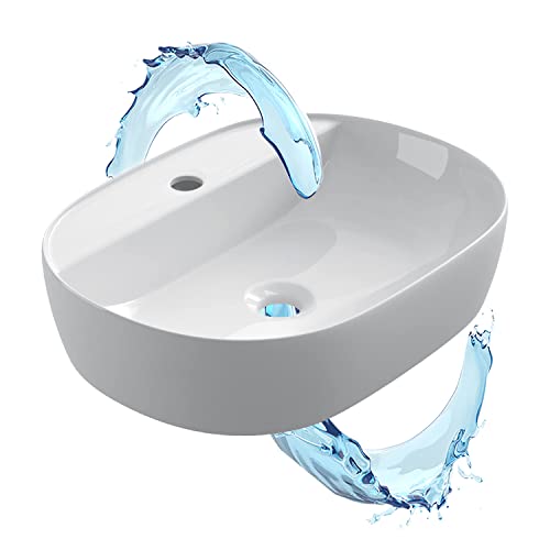 Starbath Plus - Keramiskt handfat - Ovald form - Vit - Med kranhål - Mått 50 x 38 x 12 cm - Perfekt för att sätta på bänkskivan för badrumsmöbler och toaletter