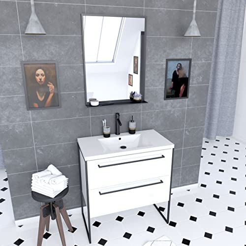 Aurlane badrumsmöbel paket 80 x 50 cm vit - 2 lådor vit - handfat + matt svart spegel