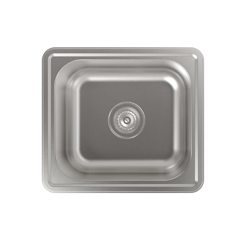 Omeere, 100 x 50 x 21 inbyggd diskbänk med stort handfat 50 x 40 cm, diskbänk rostfritt stål 304 materialtjocklek 0,9 mm, diskbänk kök diskbänk, fyrkantig, 1 handfat, dränering yta R20 (dränering till