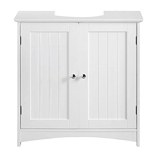 BAKAJI Tvättställsskåp Handfat Handfat Skåp Badrum Två Dörrar Dubbelöppning Hylla Hylla Modern Design Hem Utrymmesbesparande Interiör Hyllor Trä Vit 60 x 30 x 60 cm