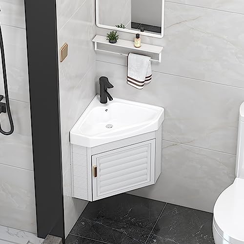 Badrumsskåp, keramisk väggmonterad badrumskärl handfat, litet hörn handfat med kran, skåp med dörrar kombination, sminkbord för moderna skåp, litet handfat för badrum (färg: Wh