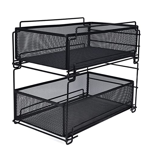 VEVOR 2 nivåer 40 cm B x 50 cm D utdragbart skåp organisatör, kraftig skjutbar ut skafferihyllor, förkromad stål rullbara lådor, glidlåda förvaring för inuti köksskåp, badrum, under handfat
