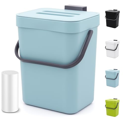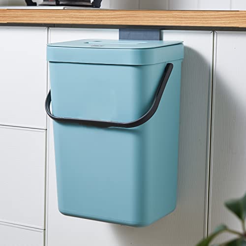 MONGTINGLU Liten papperskorg med lock – 3,5 liter kök hängande papperskorg för skåp, dörr/under handfat, bänkskiva, kompostkorg, liten soptunna för skrivbord, 5 L (subtil blå)