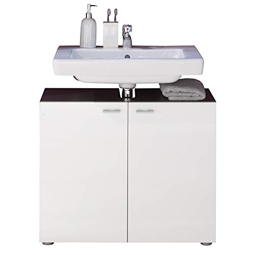 Furnline badrum under handfat skåp Tetis vit högblank grafit, trä,