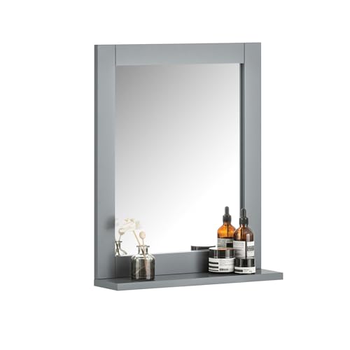 SoBuy Badrumsskåp Väggmonterat med Spegel – Smalt Spegelskåp för Badrum, Litet Skåp med Hylla, Förvaringsskåp för Handfat, Toalett eller Sovrum – Ljusgrå 40x49x10cm FRG129-SG