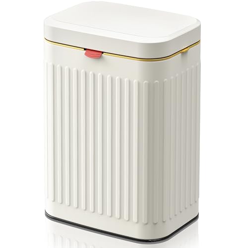 Glodeals Kökshängande papperskorg med lock, 2,1 gallon rostfritt stål papperskorg kompostfack, väggmonterad inomhus kök papperskorg för skåp, under handfat, badrum (2,1 gallon, 8 L elfenbensvit)