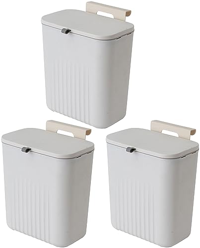 Sooyee 3-pack 12 l/3,2 l kök kompostfack för bänkskiva eller under handfat, hängande liten papperskorg med lock för skåp/badrum/sovrum/kontor/camping, komposthink vit