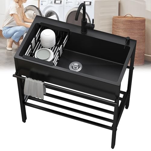 Rostfritt stål handfat med kran – fristående tvättstuga handfat för handtvätt, utomhus handfat för garage inomhus pentry källare kommersiell – köksskåp skåp