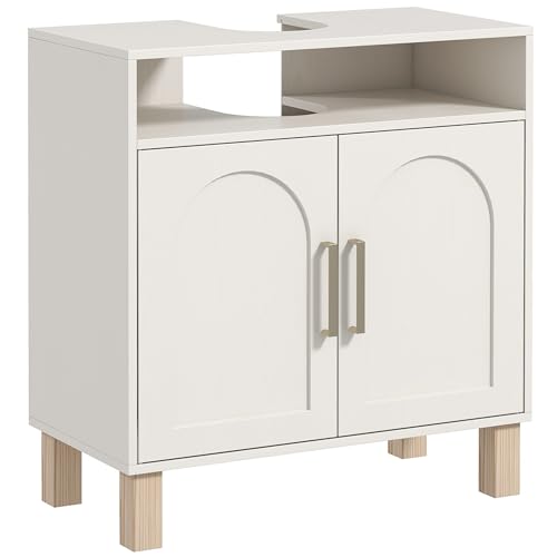 kleankin Underställsskåp badrum skåp under handfat förvaringsskåp för handfat - nisch och garderob med dubbla dörrar, 60 x 30 x 60 cm, vit
