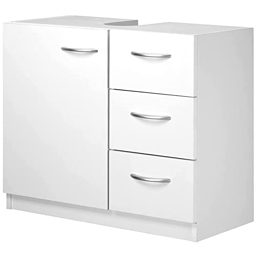 BAKAJI Tvättställsskåp Skåp Skåp 3 Lådor Badrum Handfat med Enkeldörr Modern Design Hem Utrymmesbesparande Förvaringsbox Trä Vit 30 x 63 x 54 cm