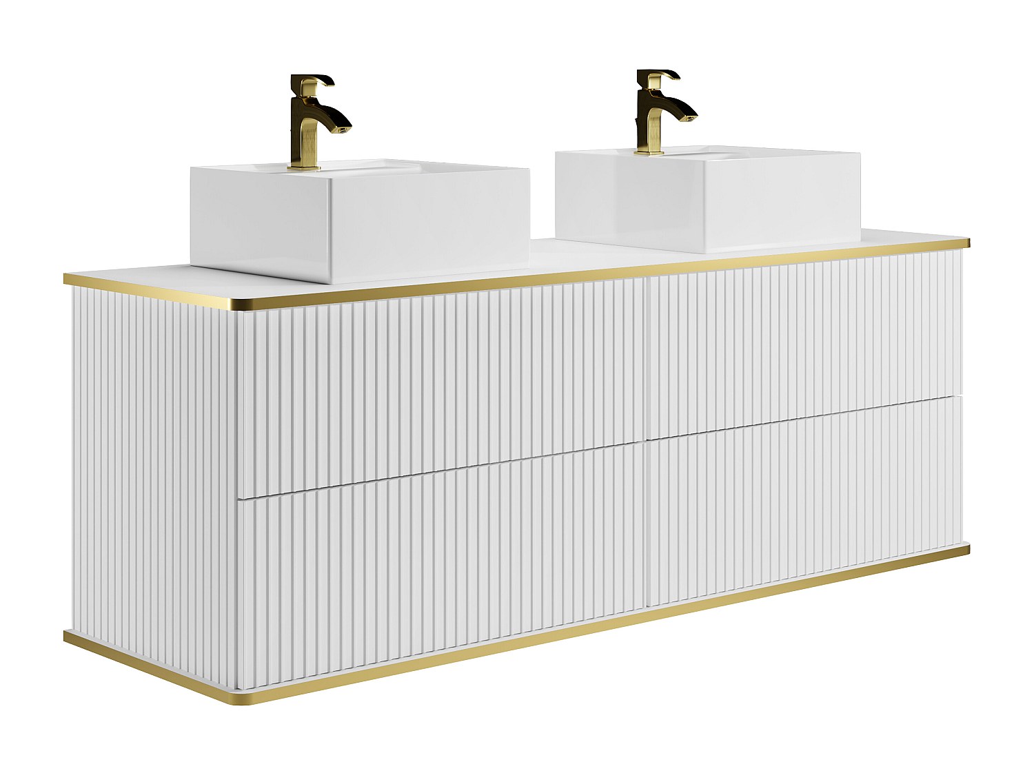 Väggmonterad profilerad badrumsmöbel med dubbla kvadratiska nedsänkbara handfat och pelare - Vit - 150 cm - KELIZA