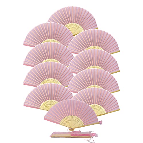 FANSOF.FANS Paket med 10 Handhållen fläkt i tyg med tofs klass A bambu ribbor fest bröllop tjänst (mjuk rosa)