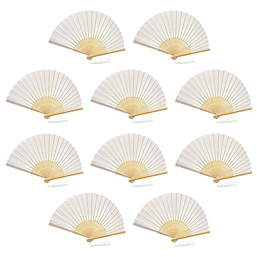 FANSOF.FANS Paket med 10 Handhållen fläkt i tyg med tofs klass A bambu ribbor fest bröllop tjänst (vit)