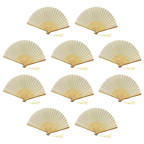 FANSOF.FANS Paket med 10 Handhållen fläkt i tyg med tofs klass A bambu ribbor fest bröllop tjänst (elfenbensbeige)