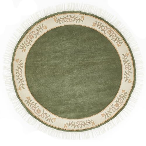 -LUXOR – living matta gala handknuten premiummatta av 100% ull – högkvalitativ hållbar knytmatta 150 cm rund grön