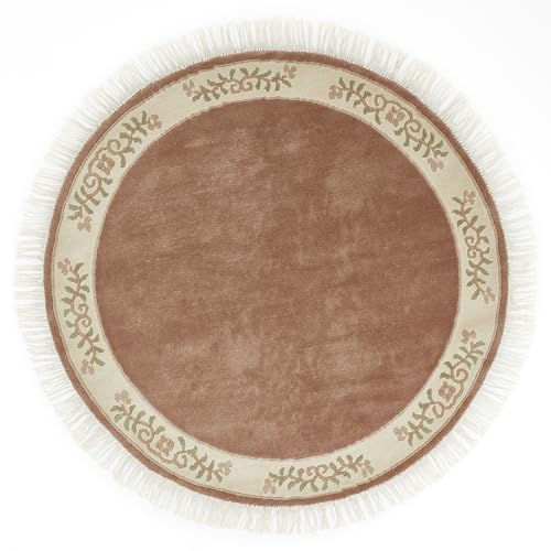 -LUXOR – levande matta gala handknuten premiummatta av 100% ull – högkvalitativ hållbar knytmatta 150 cm rund gammalrosa