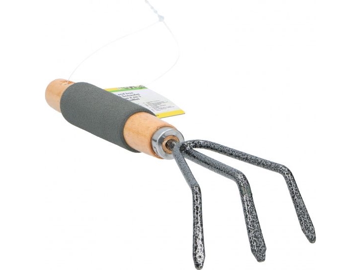 KOTARBAU® Kultivator med 3 pinnar liten trädgårdskula med trähandtag 41 cm handodlare handkultivator handkultivator handmopp trädgårdstillbehör blomrak trädgårdsverktyg svart