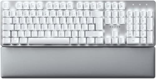 Razer Pro Type Ultra - Trådlöst mekaniskt tangentbord för produktivitet (Tysta, taktila tangenter, Handledsstöd i mjukt konstläder, Anslut upp till fyra enheter) German Layout, Vit