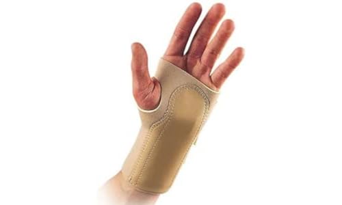 Handledsstöd i neopren, vänster, medium, beige, integrerat handflatstöd, perfekt för tendinit, stukningar och handledsskador, terapeutisk värme och kompression, har tumfördelning, lätt att applicera