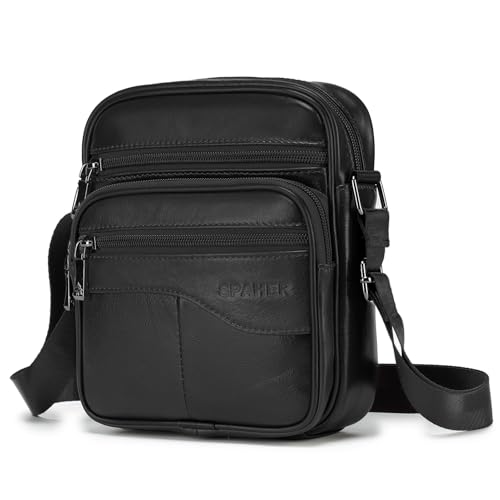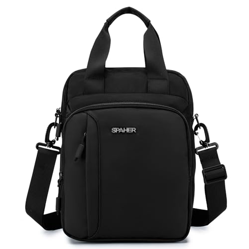 SPAHER Herrhandväskor för Crossbody axelväska Herr Axelväska Herr 11 tums iPad Herrväska för Crossbody Herr Handledsväska Affärsväska Present för Man Svart