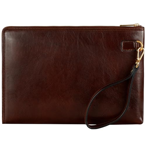 Time Resistance Läder Kopplingspåse för Män - Äkta Läder Mäns Handväska - Italiensk Fullkornigt Läder Handledsväska – Herr Koppling Väska - Presentförpackning Ingår