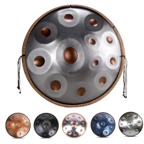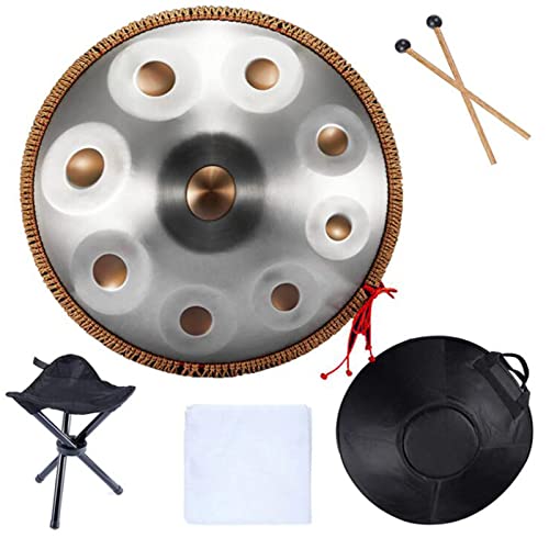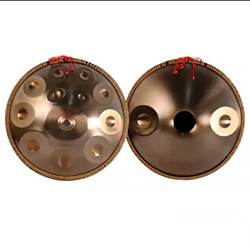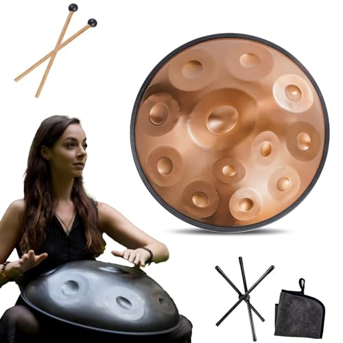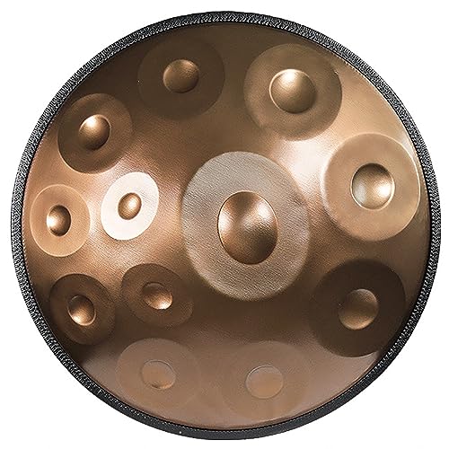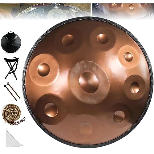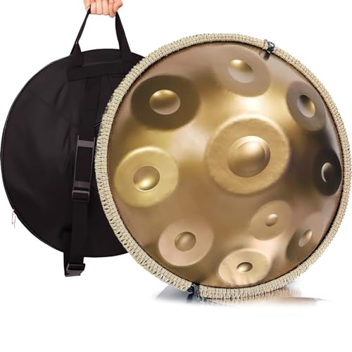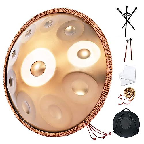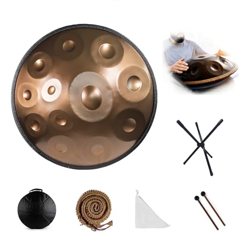 LSZMXI Harmonisk Handpanna Trumma, Handpan-instrument, D Mindre 10 Ton 22 Tum Stål Med Handpanhållare, Hållbara Hammare Och Dammtät Duk, 440 Hz Guld