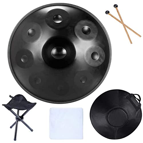 StåLtrummor 440hz 9 Noter 22 Tum 56 Cm Handpan Truminstrument D3 A Bb C D E F G A StåLhandpanna Trummor Med Handpanstativ,Handpanfodral,HåLlbara Malletter Och Dammfria Trasa,Black