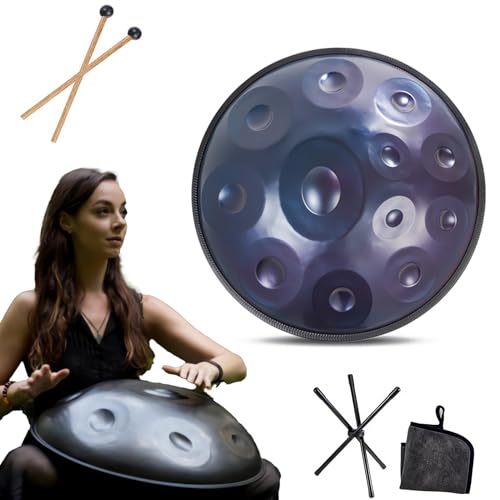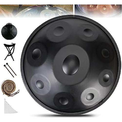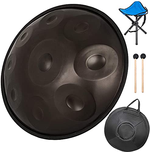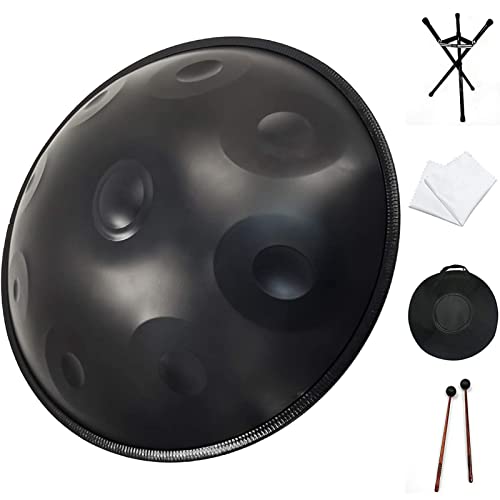 FYLZW Handpan trumma instrument i D moll 22 tum stålhandtrumma med mjuk handpanna väska, 2 handfatshammare, handpannstativ, dammfri trasa