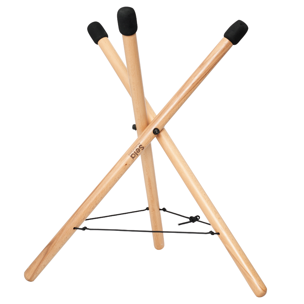 TAZZOR Handpan trumstativ, trä, justerbar, triangel, virvelhållare, essentiell trum-/handpanstativ