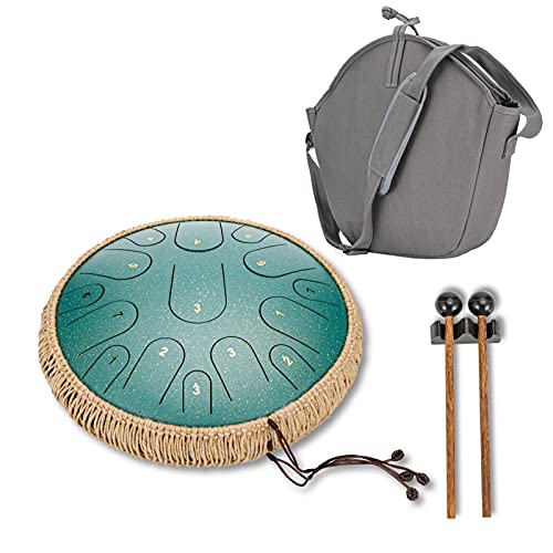 LOMUTY 12 Tum Ståltungtrumma Stål Tunga Trumma, C Nyckel 11 Noter Slagverk Stål Trumma Kit med, Handpan Trumma Eteriskt Truminstrument med Trumpinnar/Väska (Mörkgrön)