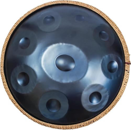 AKFJOSGE Handpanna-truminstrument, handpan-truminstrument D-moll 9/10/12 Tenne 22 tum stål, 440 Hz handtrumma med mjuk handpan-väska/2 handpan-hammare/stativ/dammfri trasa 9 toner blå