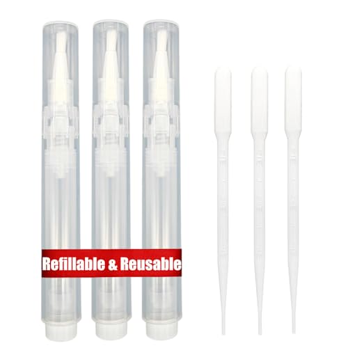 3-pack 6 ml äkta påfyllningsbar nageloljepenna, återanvändbar Empty Pen för att lätt fylla på jojoba olja/nagelolja/hårolja, enkel handpress transparent kosmetisk behållare penna applikator