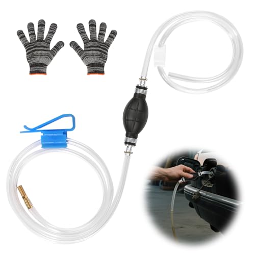 BBjinronjy Sifonpump för bensin, gasolja, bränsle, diesel, vätska vatten, akvarium, manuell handpump, överföringspump med 2 hållbara PVC-silikonslangar (15 mm) med slangklämma
