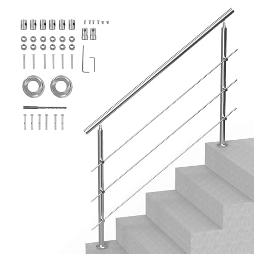 VEVOR Ledstång för yttre steg, ledstångssats för trappor 3 tvärstänger 150 cm längd, övergångsräcke i rostfritt stål installationssats, dubbla pelare trappräcke för veranda och terrass