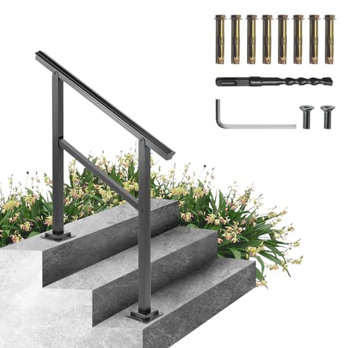 VEVOR KD-23 Ledstänger för utomhusbruk, 2-3 trappsteg inomhus utomhus med installationssats, seniorer, verandadäck handräcke, svart