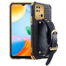 Skalo Xiaomi Redmi 10C Krokodil Guldkant Skal med Handrem Svart