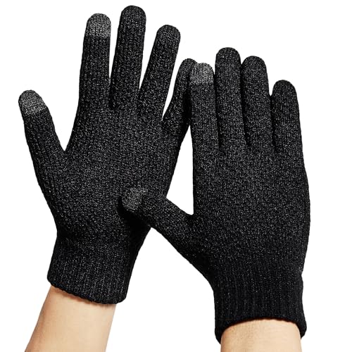 DOVAVA Touchscreen Stickade Handskar, Vinter Varma Stickade Handskar Män Mjukt Foder för Sport, Körning, Arbete(Svart)