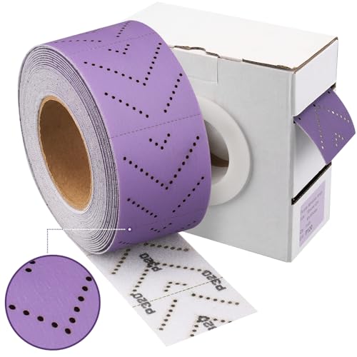 Shineboc Slipbladsrulle, kornstorlek 320, 70 mm x 12 m, lila, keramisk slipbladrulle, sliprulle, sicksackhål, med textilbas, sandpapper för handslip för trä, metall, stål, rostfritt stål