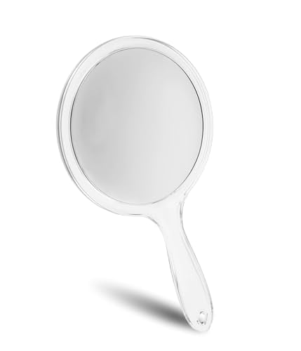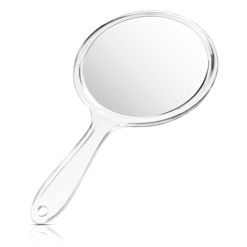 gvivej Handspegel, 21 cm dubbelsidig handspegel, kosmetisk spegel, handspegel med handtag, 1 X/3 x förstoring, för daglig make-up kvinnor (transparent)