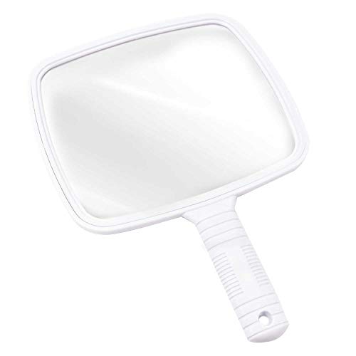 MIRRORVANA Stor handspegel med bekvämt handtag – stor handhållen spegel för frisörer, professionella frisörer, skönhetssalonger, självfrisyrer och ansiktsmakeup-applikation (vit)