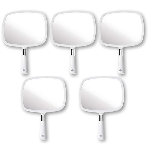 MIRORVANA Stor handspegel-set för frisörer och frisörsalonger – perfekt för hem, resor och smink, med långt, bekvämt handtag och distorsionsfri HD-reflektion, 33 x 22,9 cm, vit, 5 stycken