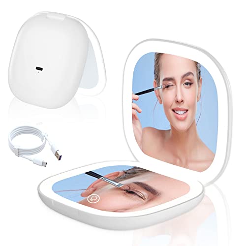 Aicharynic LED-fickspegel med 1 X/10 x förstoring, kosmetisk spegel förstoringsspegel med ljus resespegel med dimbar och 2-sidig LED-ljus handspegel vikbar, present till flickor