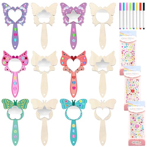 TOPJOWGA Fjärilar trä, 23 stycken gör-det-själv träspegel, hantverk för barn, mini träfjärilsspegel, träspegel för pyssel, obehandlad handspegel, träspegel för målning för gör-det-själv-målning