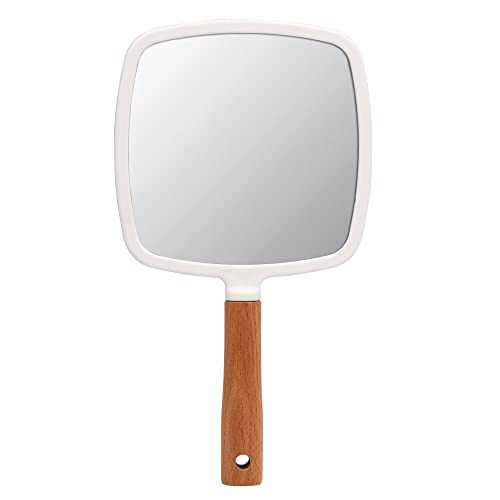 OSDUE Stor handspegel, bärbar sminkspegel med handtag, handspegel med halkfritt högupplöst handtag för frisör, frisör, salong och tandläkare - Vit (5,5 tum kvadrat)