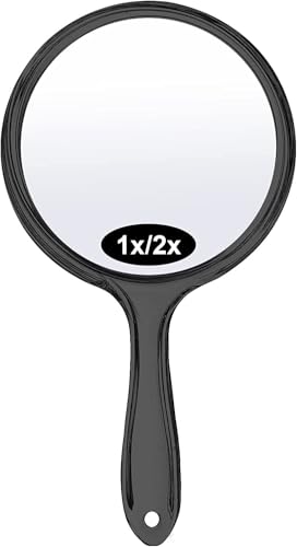 FANNAS Handspegel med handtag, svart dubbelsidig handspegel, 1X/2X sminkspegel förstoringsspegel, spegel för upphängning, bärbar resespegel för hår ansiktsvård rakapparat