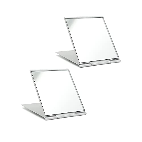 Laeeyin resespegel, fickspegel, resespegel, liten sminkspegel, handspegel, vikbar ultratunn och hållbar spegel, lämplig för resor, kontor, rakning, camping och smink (2 st 8,5 x 5 cm)