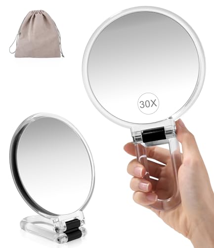 Förstoringsspegel 30x / 1x, Dubbelsidig sminkspegel, Justerbart vikbart handtag, Handspegel handtag/Bordsspel/Resespegel, Förstoring för hand, Bordsresa användning, Jul/Födelsedagspresenter