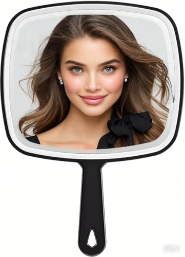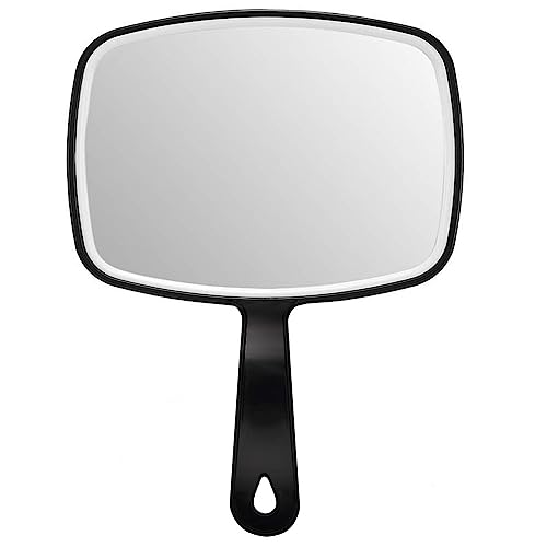 MIRRORVANA Stor handspegel med bekvämt handtag – stor handhållen spegel för frisörsalonger, frisör, tandkontor, hemma och själv hårklippning och sminkapplikation, svart