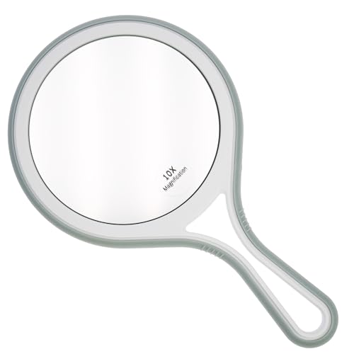 BEAUTIFIVE Handspegel med handtag 10 X/1 X, dubbelsidig förstoringsspegel med stativ, vikbar handhållen kompakt spegel för smink