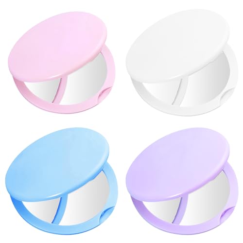 hongmo 4 stycken minisminkspegel, fickspegel, resespegel med förstoring, liten rund bärbar handspegel, vikbar minisminkspegel, för kvinnor flickor resor daglig användning